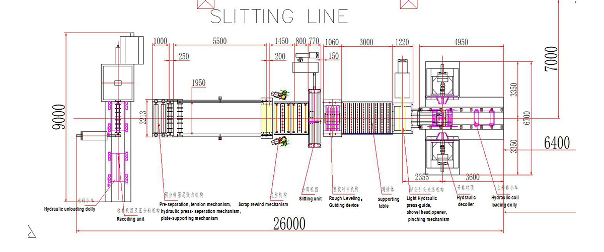 This line is for steel coil uncoiling, plate slitting and coil steel slitting process
