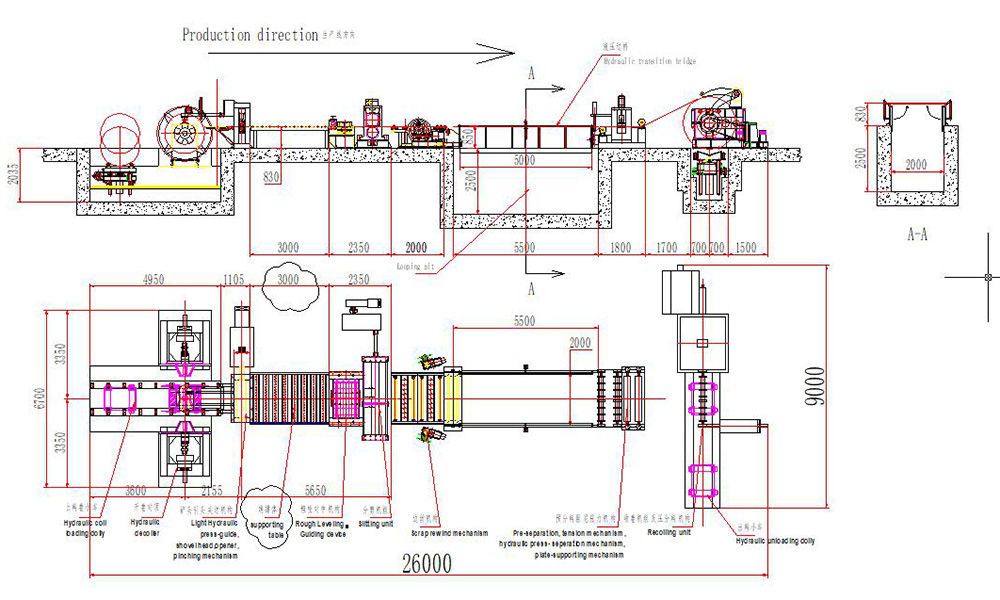打开的时候, 板料可以进入缓冲坑,便于调节收卷和分条的速度差,以及每一个钢条内应力不同引起的,长度差,使得收卷平稳,张力均匀。