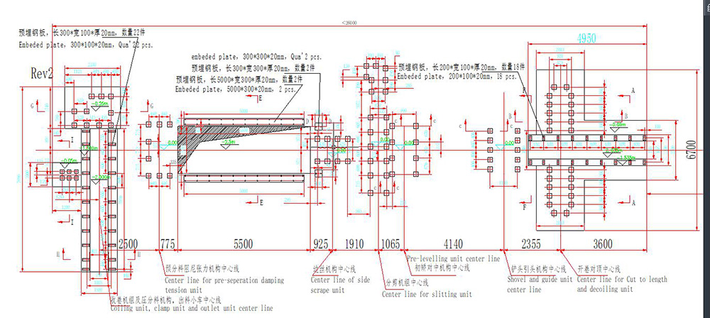 2.20分条缓冲坑尺寸:5500×2200mm×2500mm长×宽×深