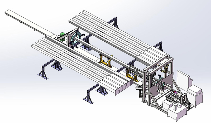 13.增加12米导轨和小头的活动支承,以提高切割和焊接的精度,适合圆杆,方管,八角杆。小头支承为伺服同步旋转。这样就不再需要制作方转圆的工装夹具了。