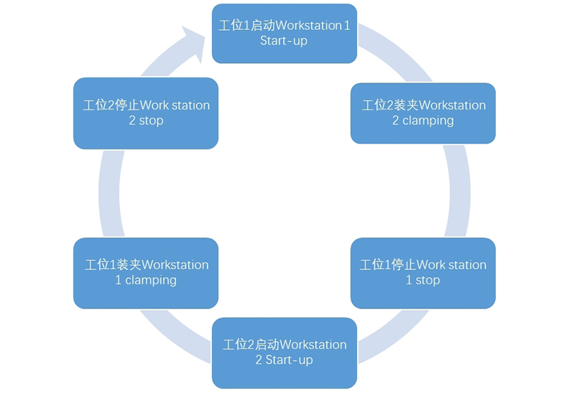 1.本机集成了六个功能,一次上下料,就可以完成,杆子的底部切整齐,底板的定位装配,底板和杆子之间的内外焊接,底板加强筋的焊接,切割电门,门框焊接。大大减少了独立工序间的物料流动和上下料时间,节约了生产空间。