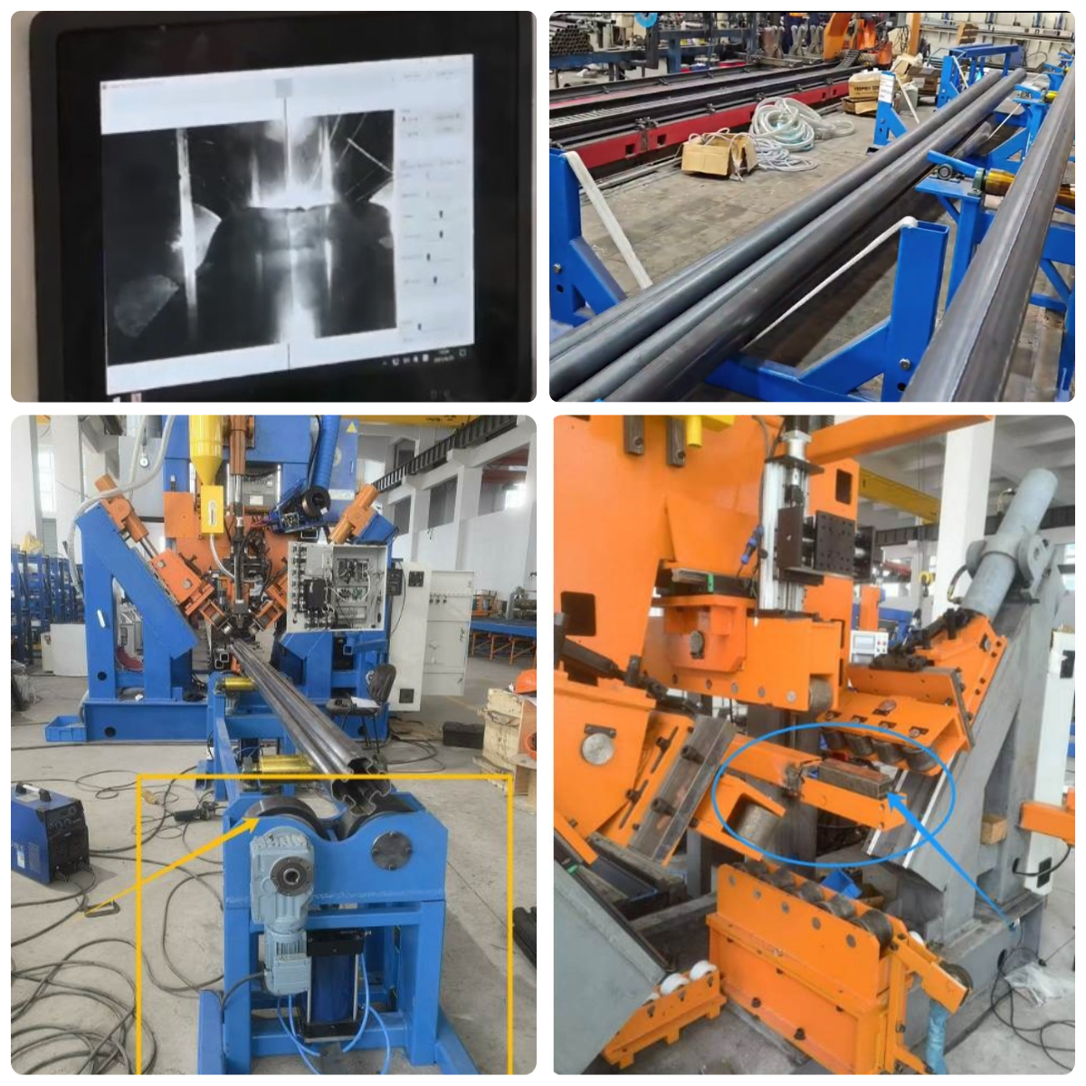 - 数控自动调整,数控系统,随着杆径变化,自动调节压力, 自动调节压脚位置,自动匹配杆子送料速度和位置,保持焊缝始终处于合拢状态,以确保焊接顺利进行。