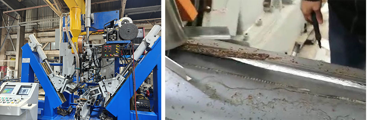 - 推动杆子为变频控制,带有电器刹车停止功能,以保证头尾焊接的稳定性。从头焊到尾,头尾几乎没有遗留未焊接的长度,不需要在尾部100~200mm 长度进行人工补焊。